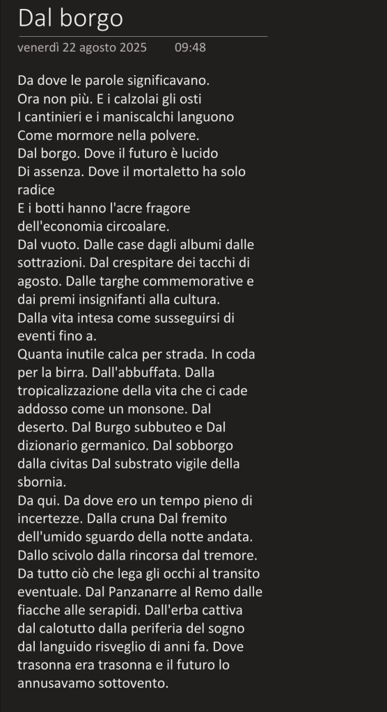 L'uomo abita l'ombra delle parole, la giostra dell'ombra delle parole. Un "animale metafisico" lo ha definito Albert Caraco: un ente che dà luce al mondo attraverso le parole. Tra la parola e la luce cade l'ombra che le permette di splendere. Il Logos, infatti, è la struttura fondamentale, la lente di ingrandimento con la quale l'uomo legge l'universo.